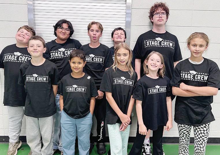 The first-time stage crew team is pictured including, from left in the back, Nathan Byrne, Joseph Peralta, Charlie Vance, Cooper Gray and Philip Herechski. In the front from left, James Bethune, Isaac Coleman, Emme DeHart, Rowan Stufft and Annabelle Cowdrey. Not pictures are Kaden Nelson and William Beighey.