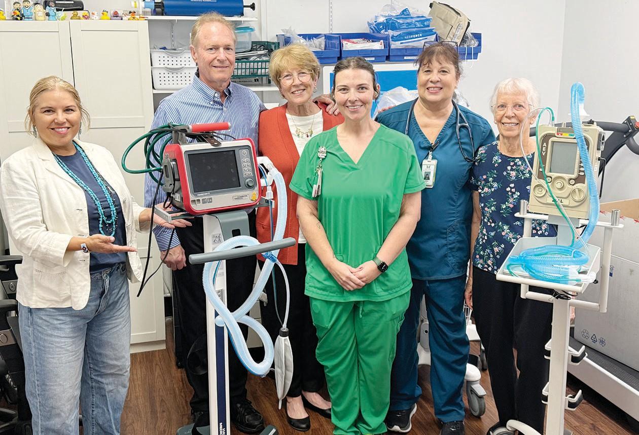 Standing with the new Hamilton T-1 ventilator are JCF Hospital Foundation board president Heather Bernikoff, major donors Glenn and Kathy Sutherland, healthcare district respiratory therapists Savannah Dent and Anna Duaro and foundation fundraising committee chair Beth Tomsick. The old ventilator is shown in comparison.