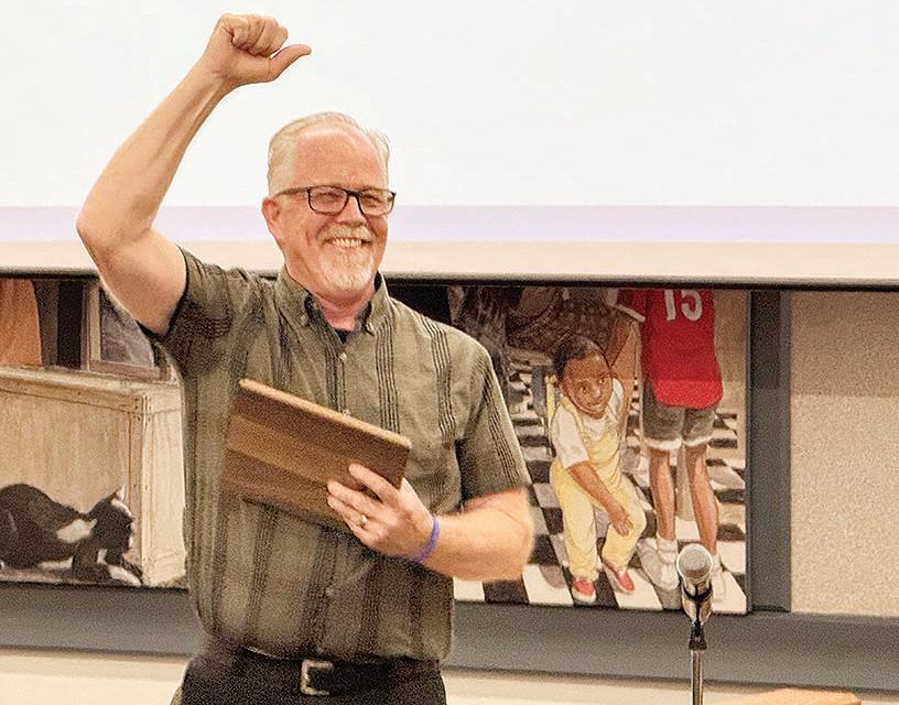 Mariposa County Planning Director Steve Engfer gives a final fist pump as the Board of Supervisors approved a proclamation for his outstanding service to the county. Photo by Tom Lyden