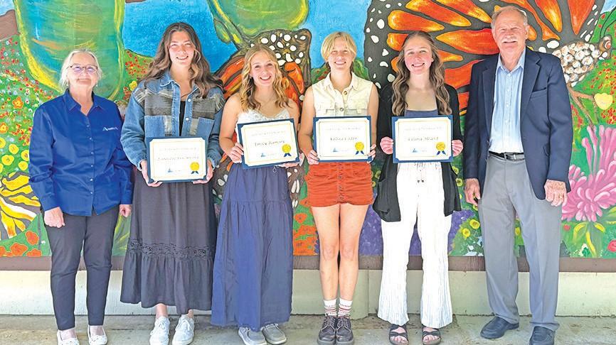 Representatives from Sierra Tel recently visited Mariposa County High School to present scholarships to several graduating seniors. Shown from left are Cindy Huber (President), Izzy Whited, Emily Ramsey, Kelsea Coder, Celina Heard and Al Baumgarner (Finance Director).