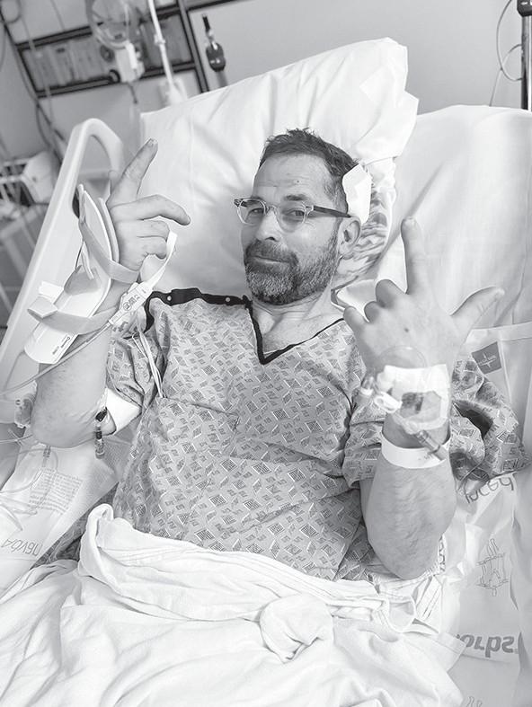 Jon Salonen, 46, after surgery is shown on Feb. 20 to remove a grape-sized tumor from his skull. The local building and remodeling contractor is expected to make a full recovery.