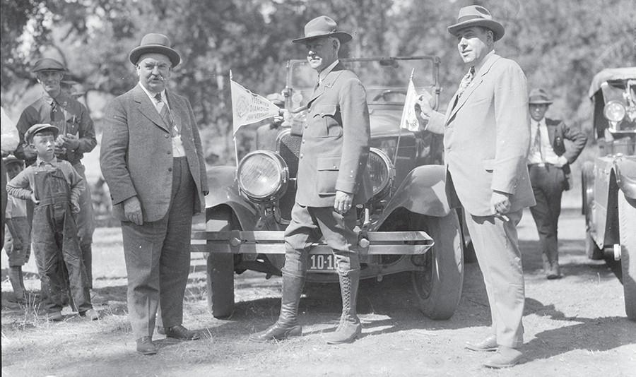 Yosemite’s Diamond Jubilee Celebration is shown in this 1926 photo. It features the opening of the All-Year Highway (Highway 140). From left are Gov. Richardson, Director Mather and Harvey Toy (or Tay).